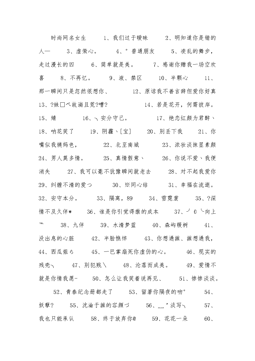 152浪味女痞153时光飞逝心在变,情在变154失去派大星的海绵宝宝155进取废人156薄荷味的小污女157姐的时髦你看不起158收起你的虚伪,给老子滚蛋159成长路上除了坚强别无选择160忐忑丶不只是神曲161彻底沉沦162堕落式163李易峰164很酷不杀人165酷啊166超拽冷酷霸气女生网名167永远多远。