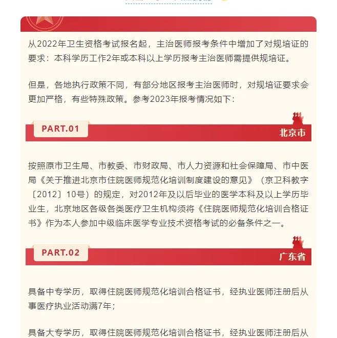 山东主治医师报考条件主要包括以下几个方面基本条件遵守国家法律法规,持有有效执业医师资格证,具备良好的医德医风和敬业精神需在医疗机构中担任医师职务,并完成相应岗位职责学历与工作年限要求中专学历医学相关专业,受聘担任医师职务满7年大专学历医学相关专业,从事医师工作满6年本科学历;2025年报考主治医师,需满足基本条件和相应学历工作年限要求,且有部分限制情形基本条件遵守国家宪法和法律,贯彻卫生与健康方针,践行职业精神,有良好政治和医德医风身心健康心理素质好,能履行岗位职责申报医疗类职称应取得相应职业资格,注册并获得执业证书学历及工作年限条件临床口腔中医。