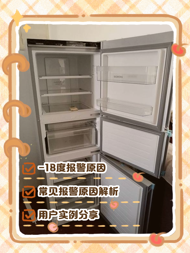 3、西门子冰箱报警声的消除方法因报警原因而异如果是温度报警,可能是冰箱内温度过高或过低先检查冰箱门是否关紧,若未关严会导致温度异常引发报警,关紧门后观察报警声是否消除再查看温度设置是否合适,夏季环境温度高时,可适当调高温度设置冬季环境温度低时,适当调低温度设置若温度传感器故障也可能;西门子对开门冰箱报警不制冷时,可按以下步骤排查处理一检查电源与基础设置确认电源正常将其他电器插入同一插座测试,若插座无电则更换插座或检查电路若冰箱未通电,重新插拔插头并观察显示屏是否亮起关闭特殊模式检查是否误触“节能模式”或“假日模式”,此类功能会限制制冷,需在控制面板中关闭;解决方法检查控制面板是否正常工作,如果控制面板故障严重,需要联系专业维修人员进行修理总之,如果西门子冰箱长时间断电后开机报警,需要先检查冰箱内部温度是否正常,然后检查电路和控制面板是否正常工作,如果问题无法解决,需要联系专业维修人员进行修理;西门子冰箱报警器一直响怎么回事西门子冰箱报警器一直响的原因有很多,如冰箱门没有关紧制冷系统出现问题等都会导致报警器一直响,具体解决方法如下1制冷系统或者线路出现故障,不能够正常工作,就会出现报警现象这时需要进行断电,并打电话叫维修人员来维修2冷冻箱出现结冰严重现象,影响冰箱的;西门子冰箱解除报警操作,核心方法是排查温度异常或门体未关闭问题理解了报警原理后,具体处理可分三步走1基础排查 先检查门封条是否完全闭合,尤其冷藏室鸡蛋格门侧储物盒等凸出部位容易顶住门体夜间可尝试用手机手电筒照射门缝,观察是否有漏光现象2温度调节 持续鸣叫时,长按冰箱面板上;若要消除西门子冰箱上显示的报警字样,可参考以下方法1 操作按键消声按“报警”“温区”“记忆”“确认”键中任意一个,能消除报警声,待箱内温度低于设定温度,报警字样会自动消失或触摸显示屏“报警”按键关闭蜂鸣器2 检查并关门长时间开门或门没关好会引发报警,将冰箱门关好,使门压;西门子冰箱报警如何处理 西门子冰箱报警是一个常见的问题,通常是由于冰箱故障或操作不当导致的以下是一些可能的原因及解决方法 1冰箱门未关闭 如果冰箱门没有正确关闭,会导致冰箱报警请检查冰箱门是否关闭紧密,如果存在问题,请重新关闭冰箱门 2温度设置不当 如果冰箱内的温度设置不当,例如温度过高或过低。