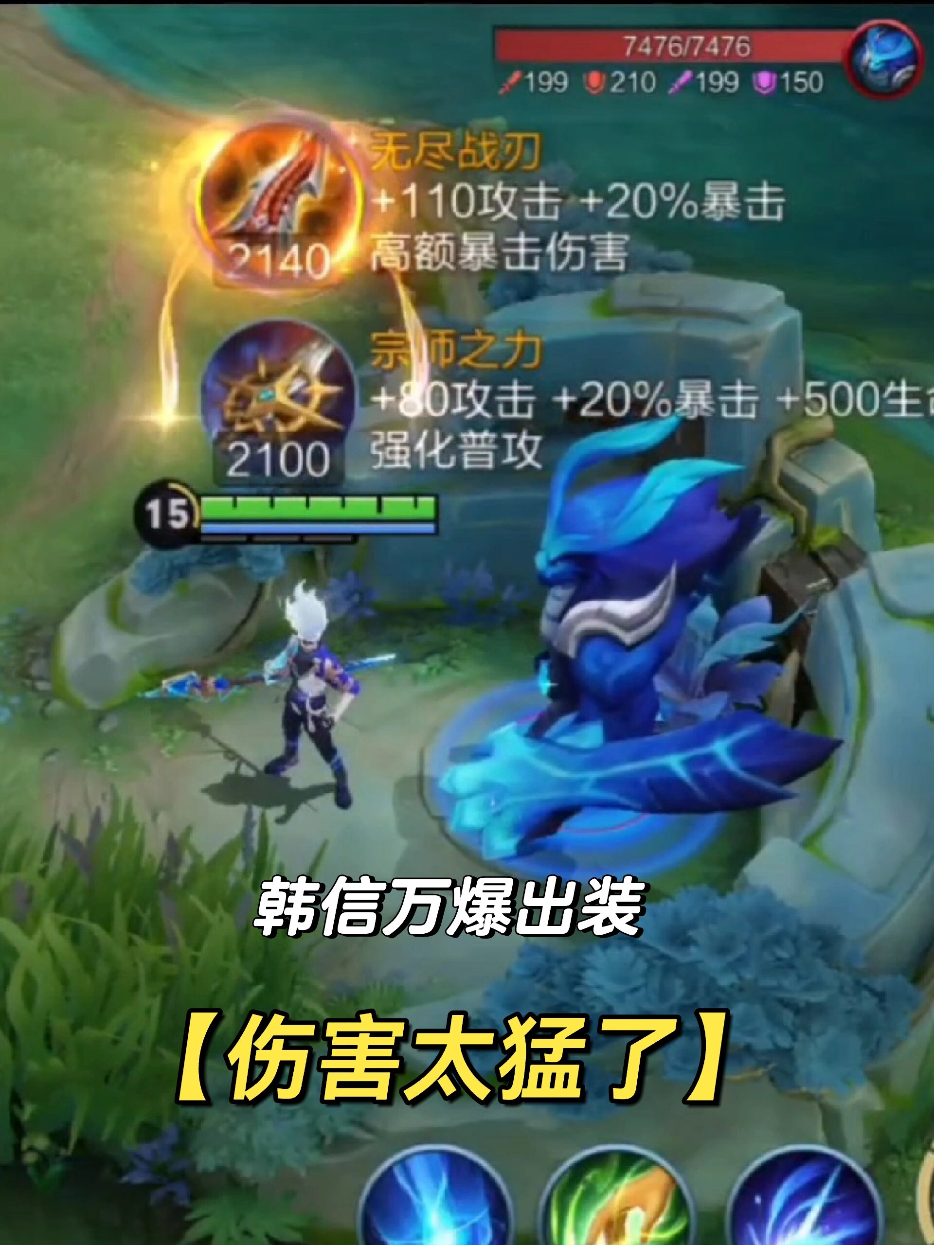 1韩信一般作为打野英雄,因此第一件装备基本都是打野装备,但是为了增加整体的爆发属性,我们最好不要直接完成全部打野刀2完成打野刀后,末世就可以作为前期的续航装备,末世的吸血属性以及攻击速度,可以帮助韩信打出更多的控制和额外输出,可以稳定对敌人造成伤害3韩信想要打出爆发伤害,暴击是。
