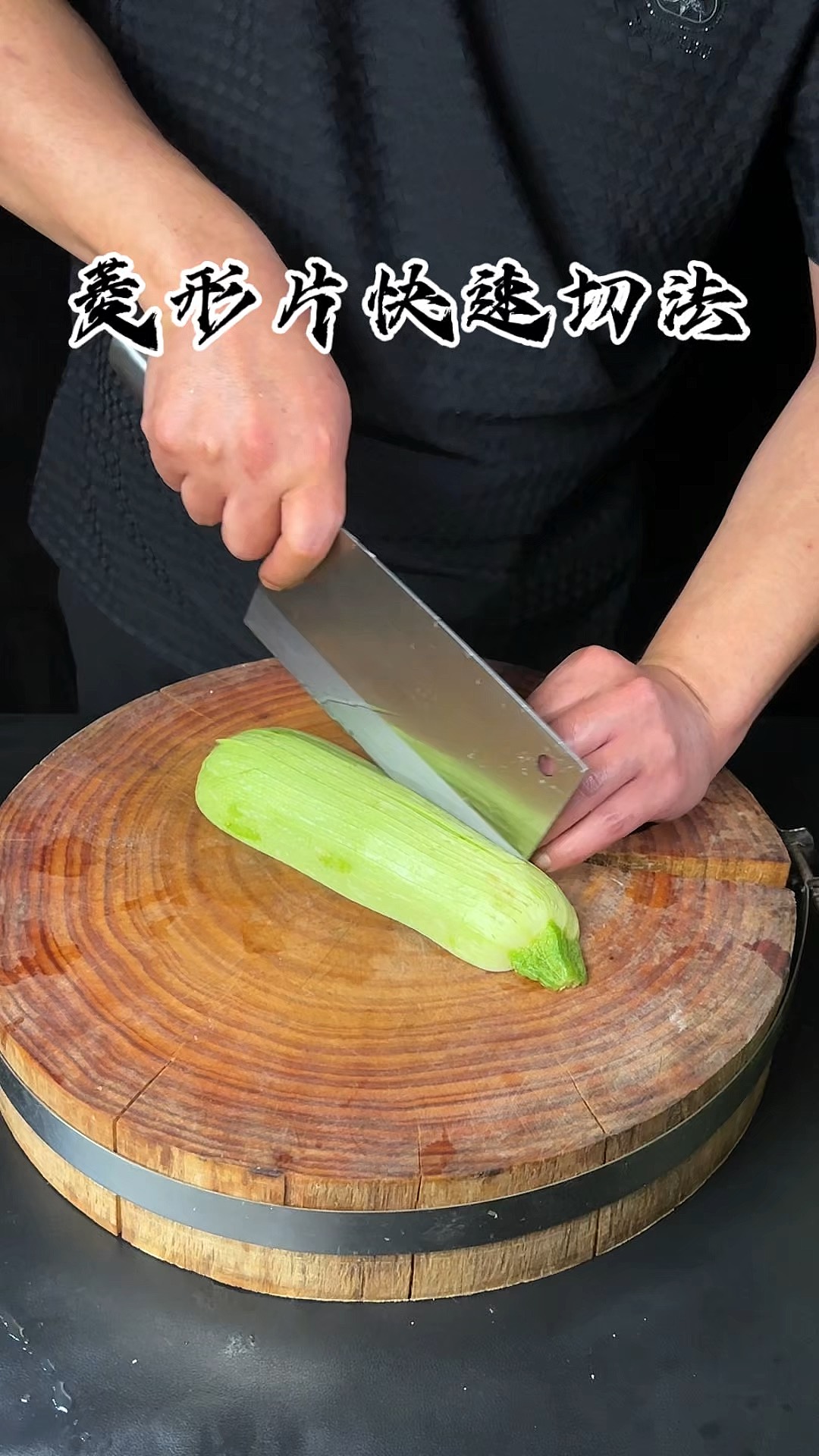 翻转并重复接下来,将西葫芦上一次的切面翻朝上面,保持同样的斜切角度,继续斜切不断地重复这个动作,就可以将西葫芦切成菱形片了注意这种方法实际上使用的是菱形刀法,也叫滚刀法,通过原料的滚动和斜立刀的方式,将原料切成形状基本相同的块在操作时,要保持切刀的角度一致,以保证切出的菱形。
