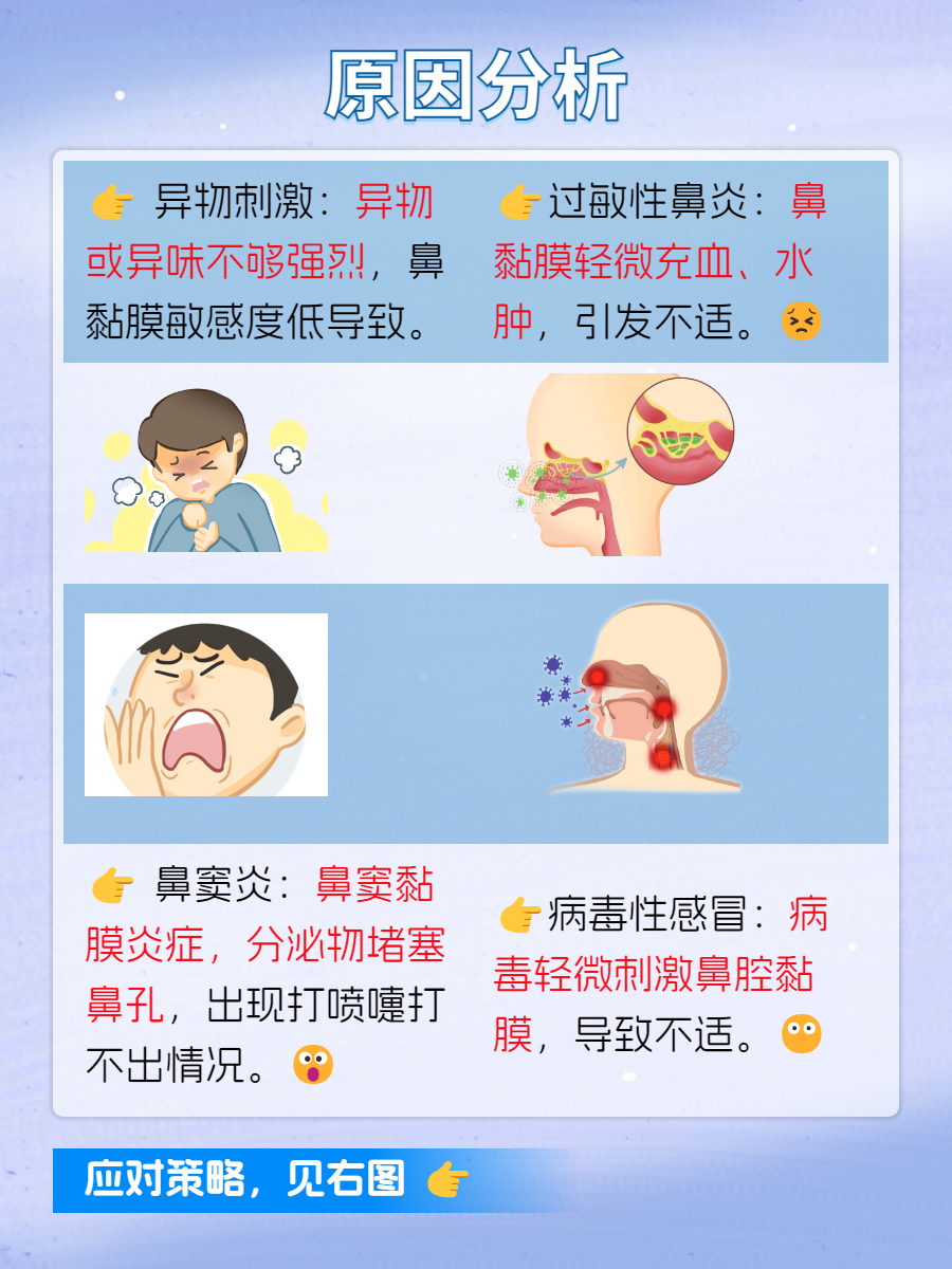 鼻腔黏膜受到刺激过敏反应1当鼻腔黏膜受到刺激时,灰尘细菌病毒等,会引起喷嚏反射,从而连续打出两个喷嚏2有些人对某些物质过敏,花粉尘螨等,当接触到这些物质时,会引起过敏反应,导致连续打喷嚏。