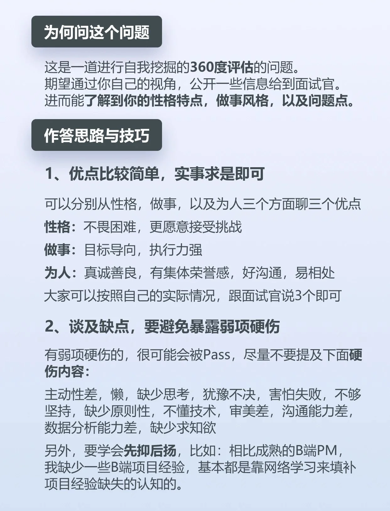 面试时描述自己的缺点不足,可以遵循以下几点策略1 诚实且有深度 真诚面对要诚实地反映自己的不足,避免使用过于老套或虚假的答案诚实是面试中的重要品质,能够赢得面试官的尊重 有见地的分析对自己的缺点进行深入分析,展示你的自我认知能力和反思精神2 传递积极信息 正面转化尽量将缺点。