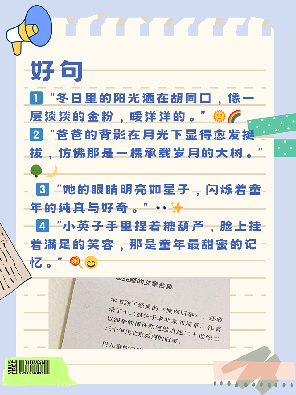 城南旧事好词好句摘抄 好词 圆圆扁扁形容形状扁平而圆润 整整齐齐形容排列得非常有序,不杂乱 肥肥的形容物体体积大而胖乎乎的 晃荡形容物体摇动不稳定的样子 粉嘟嘟形容颜色粉嫩,通常用于形容人脸颊等部位的肤色好句 兰姨娘圆圆扁扁的脸儿,一排整整齐齐的白牙,我最。