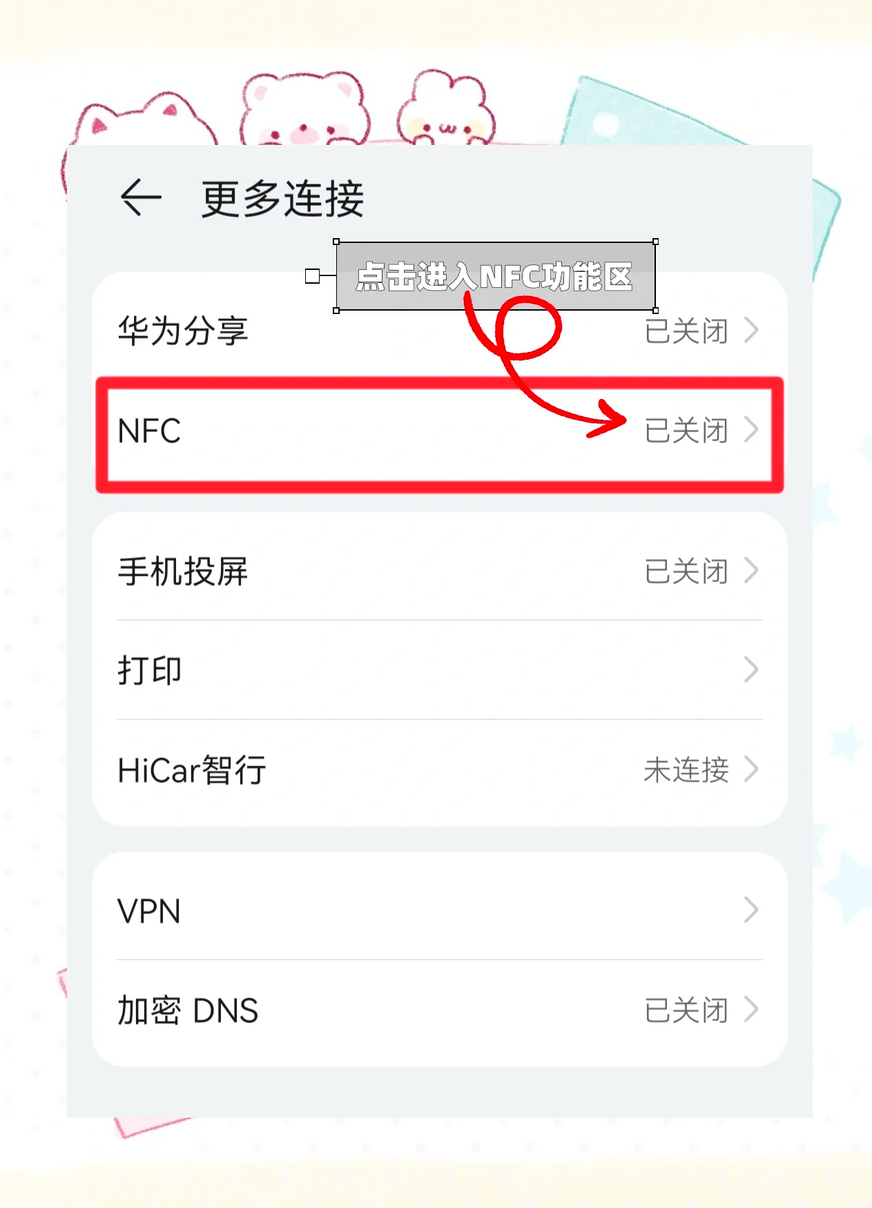 品牌型号麦芒9 系统版本EMUI 1011 1点击手机桌面上设置按钮2进入设置界面点击更多选项3进入后可看到NFC点击进入4点击NFC后面开启按钮5NFC成功开启,屏幕上端出现NFC标志温馨提示 华为手机NFC功能是手机的一项基本功能,用户开启后手机可以当做卡使用,开启方式按照上述操作步骤。