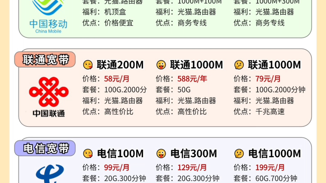 匹配现有设备对于大多数家庭来说,家里安装的光猫普遍使用的都是百兆光猫,其网速最高上限为100Mbps因此,100兆的宽带可以很好地匹配现有的百兆光猫和路由器,无需额外升级设备满足日常需求对于大多数家庭用户来说,100兆的宽带已经足够满足日常娱乐观影等需求如果家庭成员的网络活动主要是这些方面,那么100兆的。