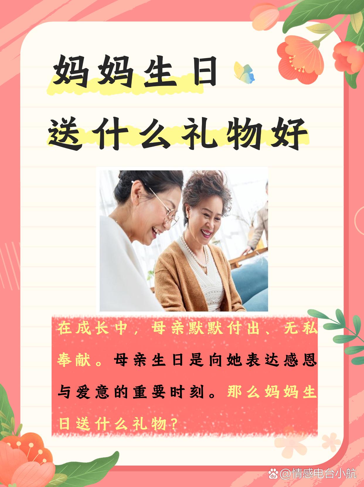 母亲生日礼物挑选的核心思路结合实用需求+情感表达+兴趣爱好,注重能陪伴日常或承载纪念意义的物品一按预算和妈妈类型推荐1 健康关怀型适合注重养生的妈妈bull养生器械颈部按摩仪300500元泡脚桶带药包200元乳胶护颈枕200元左右 bull滋补食品阿胶糕礼盒黑。