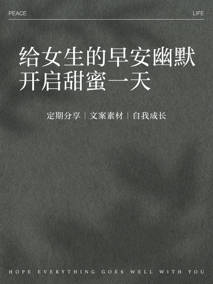6、4 幽默与轻松类 早安,今天也要元气满满哦 醒来,就是为了吃好吃的,早安 早安,愿你的笑容比阳光还灿烂 清晨的阳光说早安,懒猪 早安,又是元气满满与床斗争的一天5 简短而深情类 早安,愿你一切安好 清晨的问候,满满的都是爱早安 早安,愿你的心情如阳光般明媚 每。