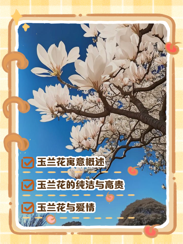 4、玉兰花传说的美丽与神秘为这种花卉增添了更多层次的文化内涵其深邃的寓意和动人的传说使其成为受人喜爱的花卉之一玉兰花所象征的不仅仅是外在的美丽,更是内在的品质和精神的体现无论是为了表达对恩人的感激之情,还是为了赞美忠贞不渝的爱情,玉兰花都是一个绝佳的选择。