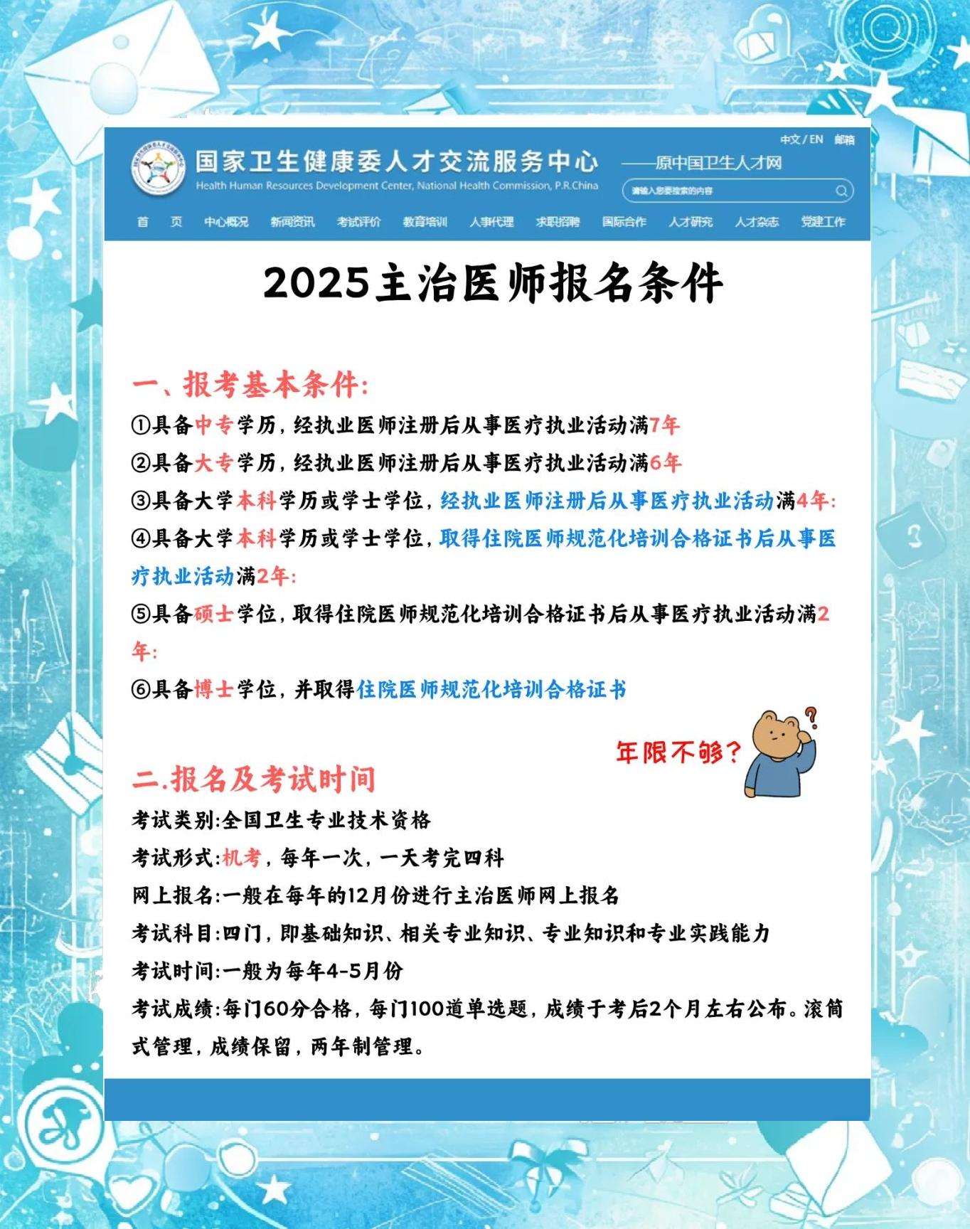 2025年医师资格考试的报名条件主要包括以下几点具有高等学校医学专业本科以上学历,并在执业医师指导下,在医疗预防保健机构中试用期满一年的,可以参加执业医师资格考试取得执业助理医师执业证书后,具有高等学校医学专科学历,在医疗预防保健机构中工作满二年或者具有中等专业学校医学专业学历,在。