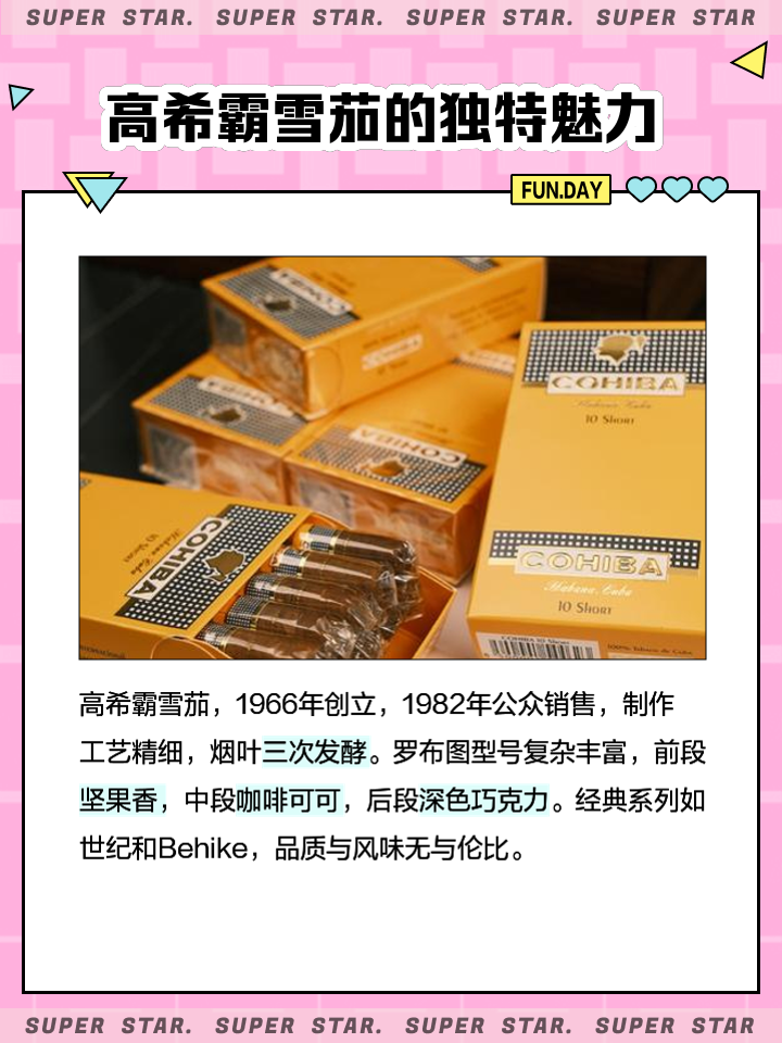 高希霸Club 10支装这款雪茄的价格相对稳定,通常为2280元一盒^3^对于追求高品质雪茄体验的消费者来说,这是一个相对合理的价格区间高希霸俱乐部小雪茄Cohiba Club Minis这款小雪茄以每盒10支的包装出售,价格为2000元一盒^4^虽然体积小巧,但口感和品质依然保持了高希霸品牌的卓越。