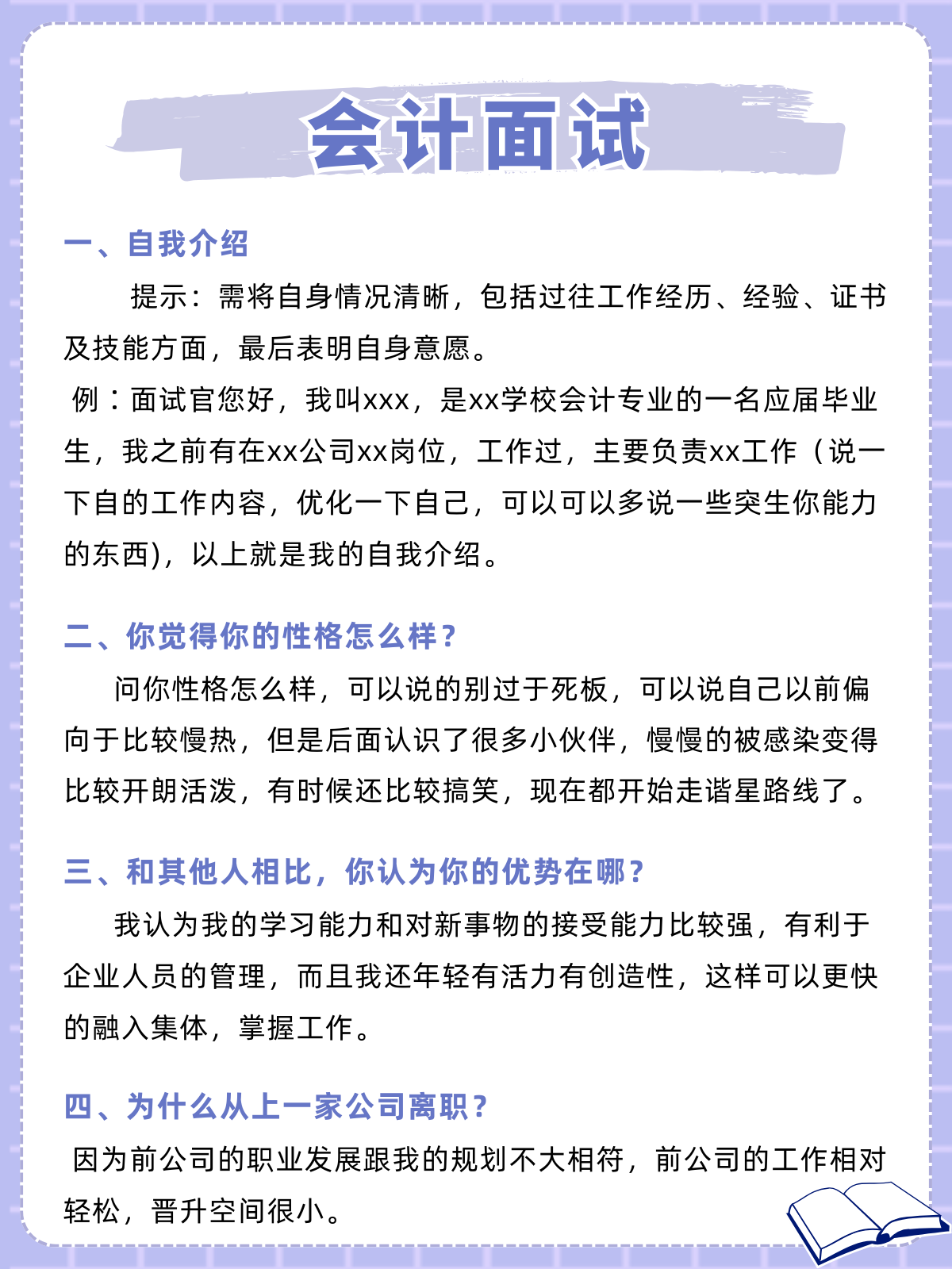 面试中常见的问题及回答思路,希望能帮助到你问题一“请你自我介绍一下”思路这是面试的必考题目介绍内容要与个人简历相一致表述方式上尽量口语化,条理要清晰,层次要分明事先最好以文字的形式写好背熟问题二“谈谈你的家庭情况”思路家庭情况对于了解应聘者的性格观念心态等有。