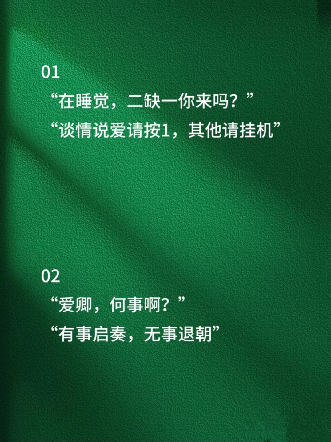 1 当你的男友发来“在干嘛”的消息时,他其实是在寻找与你互动的机会2 别再简单地回答“没干嘛”,这会让对话变得乏味3 你可以尝试这些有趣的回复,它们不仅能让对话活跃起来,还能展现你的幽默感,让他更加期待与你交流4 回复示例1 quot我正在和镜子里的自己比赛谁更帅,你一来,我就输了quot5 回复示例2 quot我。