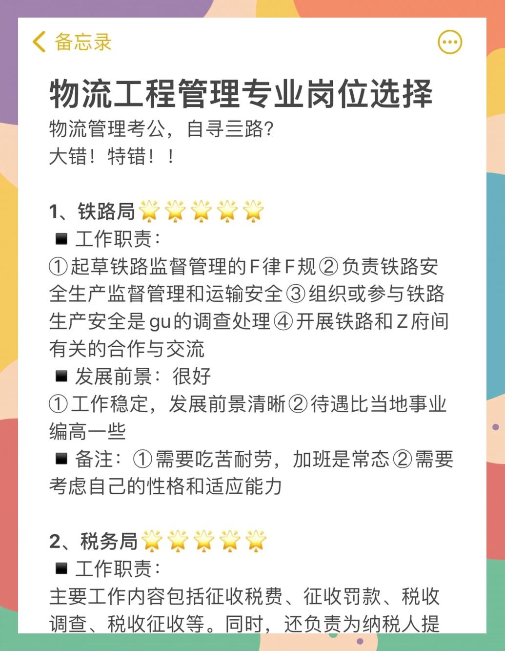 6、那么在学习过程中得到的管理学知识也足以帮助你走出一条道路工商管理专业的毕业生对口的职位,如市场营销策划销售文案行政助理管理咨询等都是物流管理专业的毕业生所可以胜任的如果是想考取公务员的话,管理方面的专业知识也十分有帮助不光是基础岗,考个中国邮政中国海关什么的都不错。
