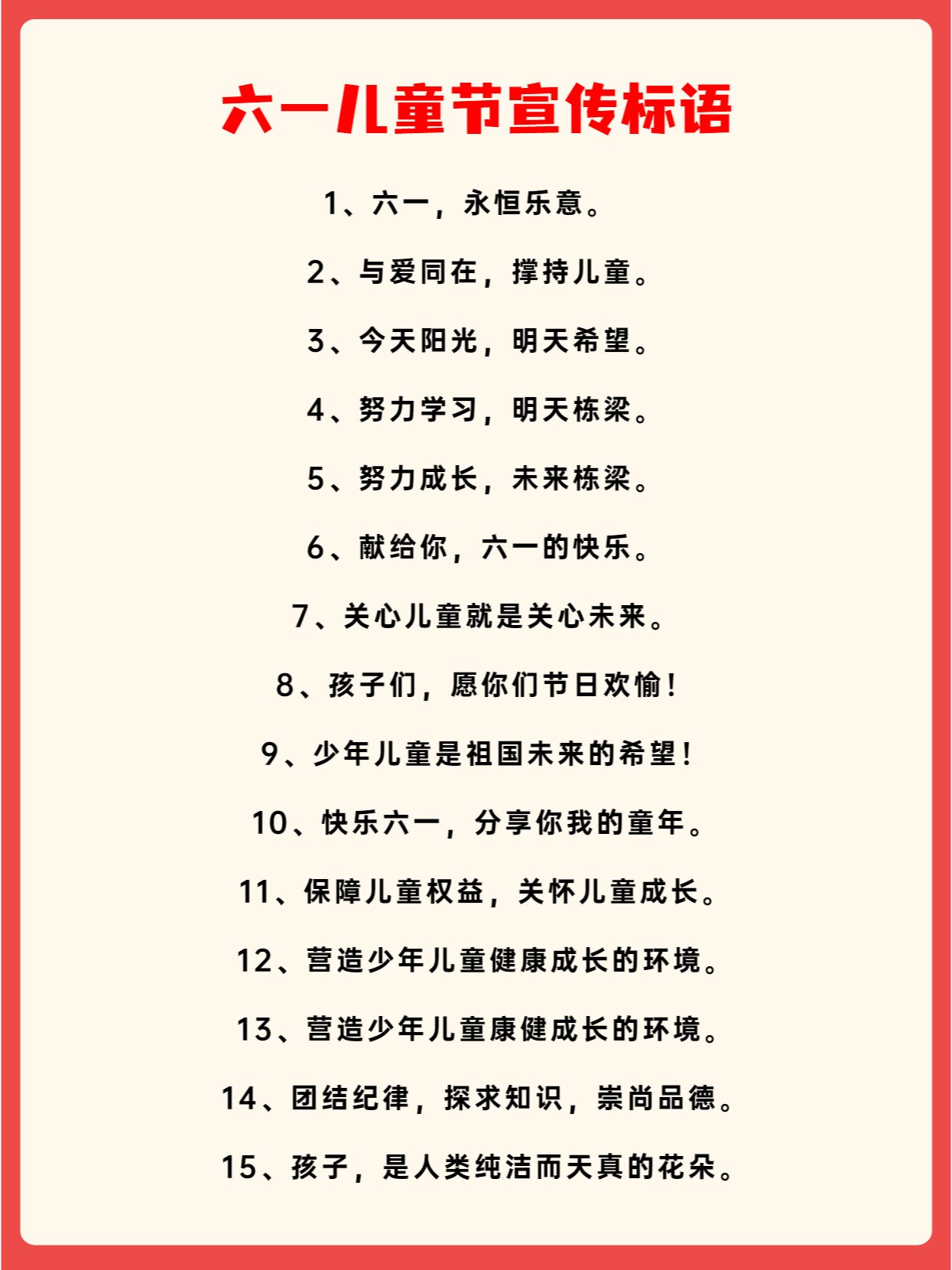 通俗文案类1愿你童心未泯,愿你初心不忘愿你行走多年,归来仍是少年祝愿小朋友们六一快乐也祝大朋友们节日快乐,心如童年2生活多微笑,童心永在心情要舒畅,童趣拥有童真永留六一儿童节,愿你万事顺利,身体安康如意,祝儿童节日快乐3快乐如肥皂泡,一吹就满天飞烦恼如。
