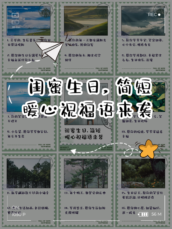14、甜蜜温馨驻身边6 轻松幽默型 傻傻的诉说,我们的快乐生日快乐 礼虽轻,情珍贵祝福你拥有一个甜美温馨快快乐乐的生日,记得多吃蛋糕哦这些祝福语既表达了你对闺蜜的深厚情感,又具有一定的创意和趣味性,非常适合在抖音等平台上分享,让你的祝福成为她生日当天的一道亮丽风景线。