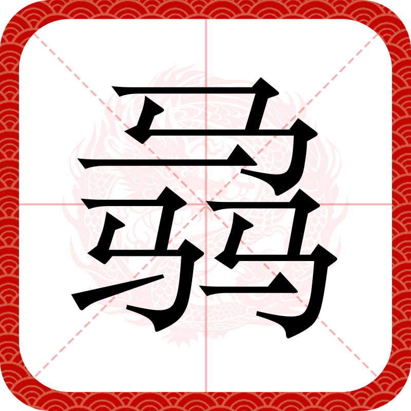 骉读什么字答案biāo骉 拼音biāo 简体部首马 五笔CCCF 总笔画9 笔顺横折,竖折折钩,横,横折,竖折折钩,提,横折,竖折折钩,横 解释众马奔腾的样子组词骉水 biāo shuǐ 见“ 驫驫水 ”骉骉 biāo biāo 众马;騳骉读作dú liù騳这个字较为罕见,读音为dú在古汉语中,它表示两匹马并驾齐驱的样子,寓意着力量速度和团结这个字常被用来形容军队的威武之势或英勇并进骉这个字也不常见,读音为liù它形象地描述了众马奔腾的场景,常被用来描绘战场上的激烈马战,或者是形容众多马匹奔腾的。