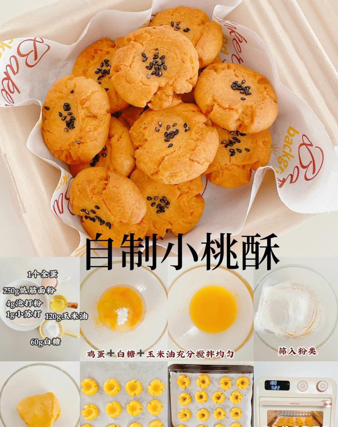 9、制作香甜酥脆小饼干的简单家常做法如下所需材料 蛋黄3个 低筋面粉30克 糖10克 制作步骤1 准备材料将3个蛋黄分离到一个干净且无油无水的容器中2 打发蛋黄将10克糖加入蛋黄中,使用电动打蛋器或手动打蛋器将蛋黄打发至粘稠状3 混合面粉将30克低筋面粉过筛后加入打发好的蛋黄糊。