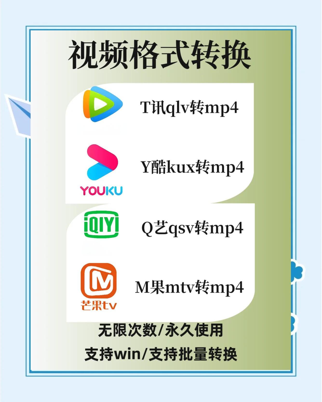 在转换器的输出格式选项中选择MP4格式点击开始转换按钮,等待转换完成四转换完成与播放 等待转换完成转换过程可能需要一些时间,具体时间取决于视频文件的大小和转换器的性能播放和分享转换完成后,你就可以在其他设备上播放和分享转换后的MP4格式视频了总结将腾讯视频下载的QLV格式视频转换成。