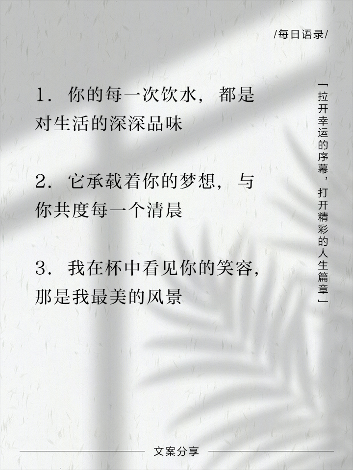 转载请注明来自极限财经,本文标题:《水杯上刻提醒多喝水的句子》