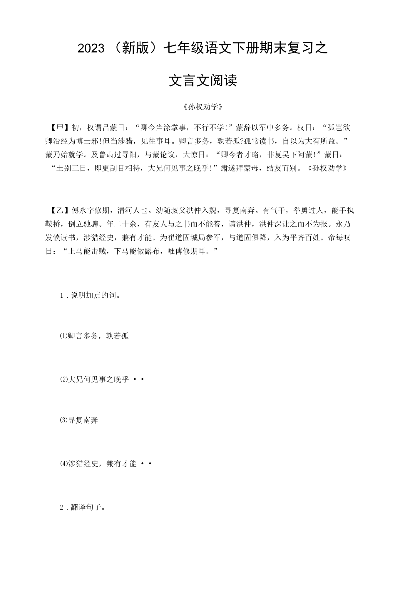 4、1蒙辞以军中多务翻译吕蒙用军中事务繁多来推托2原文孙权劝学作者司马光 朝代宋 初,权谓吕蒙曰“卿今当涂掌事,不可不学”蒙辞以军中多务权曰“孤岂欲卿治经为博士邪但当涉猎,见往事耳卿言多务,孰若孤孤常读书,自以为大有所益”蒙乃始就学及。