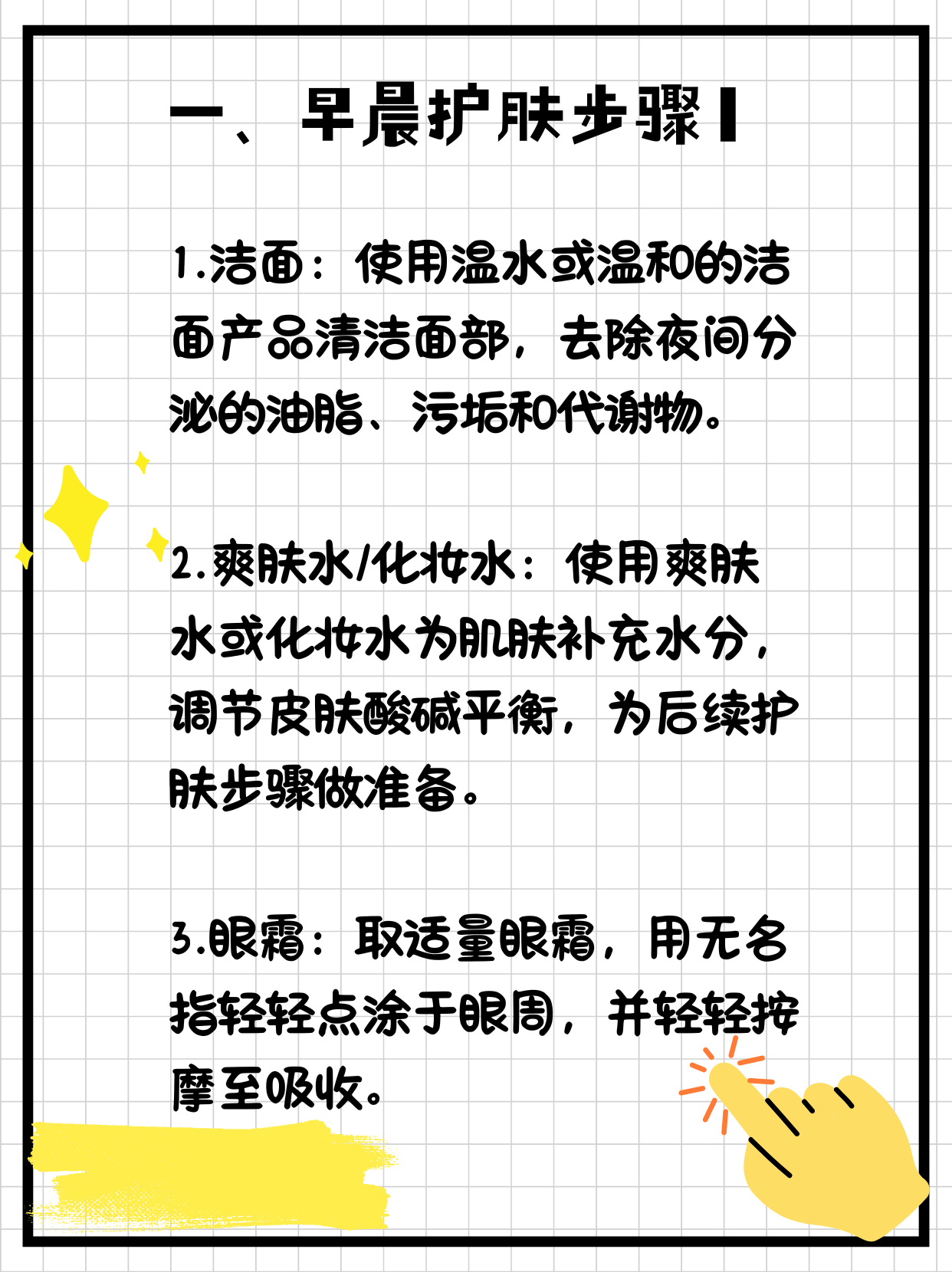 3、一套护肤品的使用顺序 1洁面产品护肤的第一步是清洁,使用适合自己肤质的洁面产品,无论是早上还是晚上,都需要清洁皮肤,去除油脂和污垢2化妆水洁面后,使用化妆水补充皮肤的水分,并且通过二次清洁来去除残留的污物,为后续护肤品的吸收做好准备3肌底液肌底液的作用是打开皮肤的通道;正确的护肤顺序七步包括洁面肌底液化妆水眼霜精华乳液面霜 1洁面使用洗面奶,按照油性皮肤使用紧肤水,健康皮肤使用爽肤水,干性皮肤使用柔肤水,混合皮肤T区使用紧肤水,敏感皮肤选用敏感水修复水的原则,将脸蛋清洗干净 2肌底液涂抹肌底液,帮助后续护肤品更好地吸收 3化妆水用化妆水调理;护肤品的使用顺序俗话说,方法不对,努力白费哦!正确的护肤方式应该是这样的!1洗面奶清洁面部,取适量洁面乳最好用温和的洗面奶以画园的方式由下往上按摩脸部,1~3分钟后就可以洗净2爽肤水可以用化妆棉蘸爽;全套护肤品的正确使用顺序护肤品使用时要按照洁面乳护肤水精华眼霜乳液面霜的顺序用温润的化妆品醮取适量的卸妆液卸去面部妆容,无需洗面奶,最后用清水洗净先将脸部清洁干净,可以使用温和的洁面乳或洁面皂用温水湿润面部后,取适量洁面产品在手心搓出泡沫,轻柔按摩脸部,然后用清水;女性们每天都会进行肌肤保养,梳妆台上堆满了各式各样的护肤品逐一使用这些产品,往往需要花费十多分钟然而,你是否确认自己的护肤步骤是正确的呢每种护肤品都有其特定的作用,因此我们应该正确使用,并按照正确的顺序进行护肤那么,一整套护肤品的使用顺序是怎样的呢让我们一起来理清一下吧第;全套护肤品的正确使用顺序如下洁面使用洗面奶对脸部肌肤进行彻底清洁,以去除污垢油脂和老化角质使用爽肤水用爽肤水轻轻拍打脸部,为肌肤补充水分爽肤水柔肤水或收敛水等化妆水均可使用,根据个人肤质选择合适的产品使用精华液在乳液和面霜之前使用精华液先将手部搓热,然后倒入适量的。