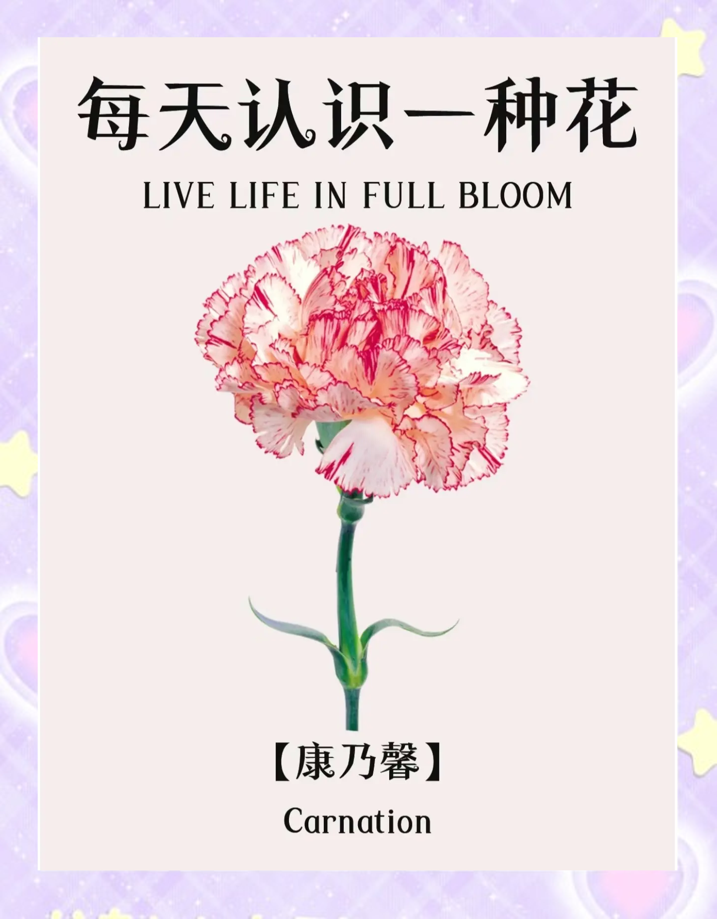 花语康乃馨的花语是爱魅力尊敬之情这些花语不仅表达了人们对美好情感的向往和追求,也体现了康乃馨作为花卉的独特魅力象征意义在母亲节这一天,赠送康乃馨给母亲,不仅是对母亲辛勤付出的感激和尊敬,更是对母爱的深情赞美康乃馨成为了连接子女与母亲情感的桥梁,传递着温暖和祝福三康乃馨的。