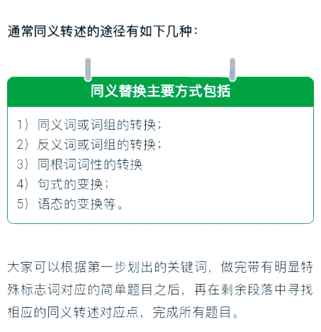 这种考试的段落匹配题不是一对一选项英语四级段落匹配题是长篇阅读理解篇章后附有10个句子,每句一题每句所含的信息出自篇章的某一段落,要求考生找出与每句所含信息相匹配的段落有的段落可能对应两题,有的段落可能不对应任何一题。