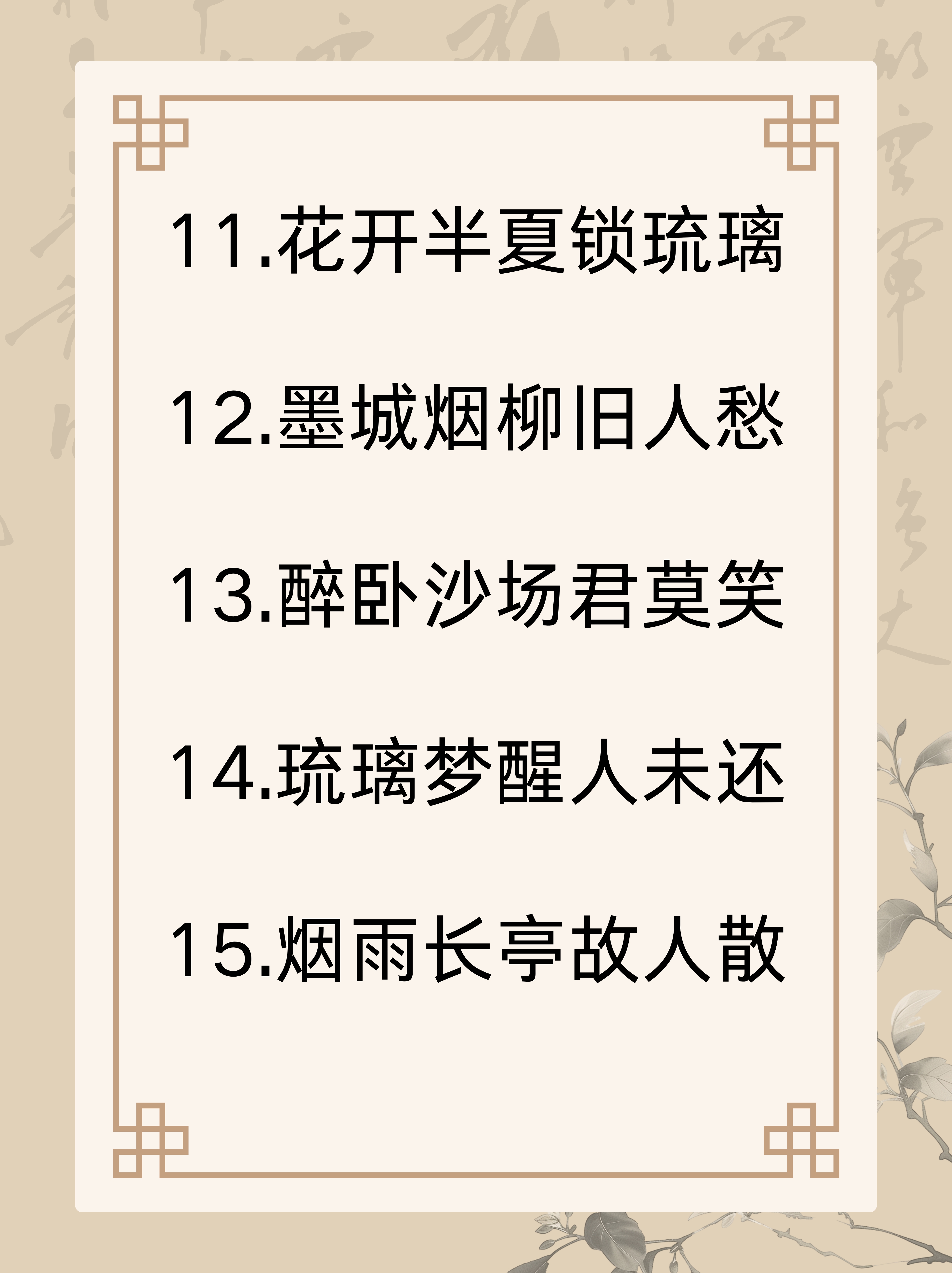 4、以下是一些适合王者荣耀的诗意古风名字微雨打梨花灬取自古典诗词中的意境,梨花带雨,柔美而哀愁,适合喜欢文艺风格的玩家放浪江湖充满豪情壮志,适合喜欢自由不受拘束的玩家,寓意在王者荣耀的战场上畅游无阻谏书稀寓意言辞犀利,见解独到,适合有思想深度的玩家美酒斗十千取自古诗“金樽。