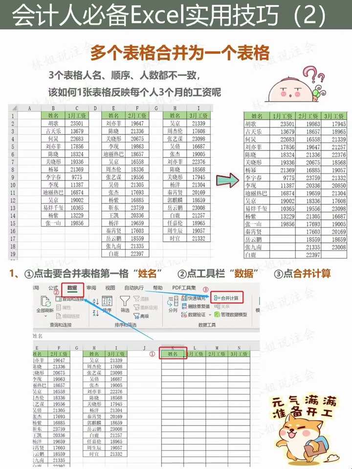 13、首先,从下图中,我们要很形象化地先明确掉文件夹工作簿工作表的概念其次,要合并的数据应该是格式统一的,工作簿工作表表头或者叫字段名要一致列数等同,否则只是一堆乱糟糟的数据合并堆砌就没有任何意义Excel合并成一个Excel存在两种情况,一种是多个工作表合并成一个工作表,另一种。