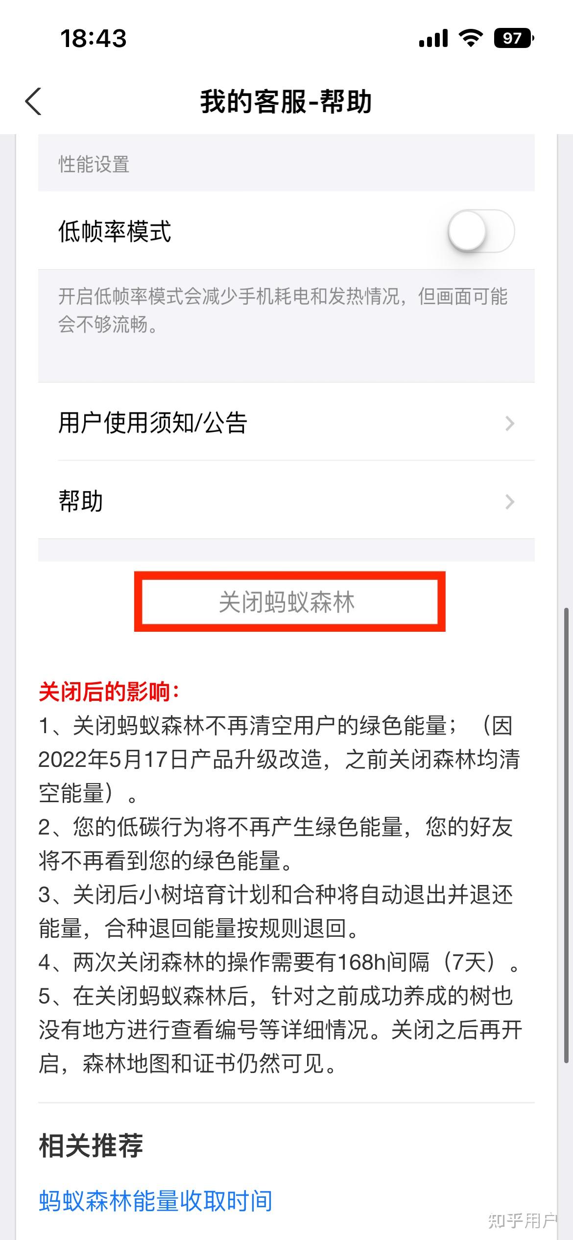 18、蚂蚁森林关闭入口支付宝客户端进入蚂蚁森林右上角设置关闭蚂蚁森林温馨提醒1关闭后,您当前的树苗能量将被清空,您的低碳行为将不再产生绿色能量,您的好友将不再看到您的绿色能量若您后续有需求,可以重新进入蚂蚁森林,重新开启2在关闭蚂蚁森林后,针对之前成功养成的树也没有。