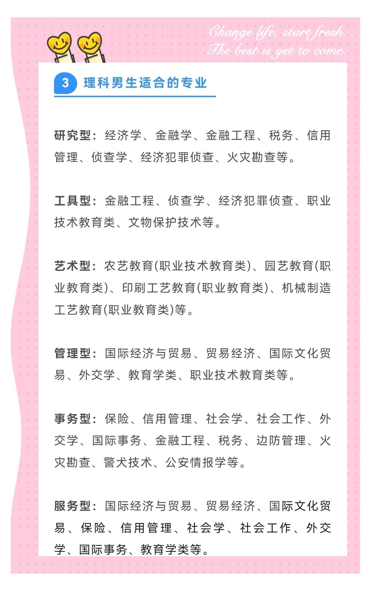 会计学专业虽报考人数多,但男生报考较少,且发展前景往往比女生好该专业对学历要求并非极高,大专也能有不错发展,不过证书比较重要家具设计与制造专业近年来家装行业发展良好,此专业有发展前途但工作较辛苦,若能吃苦,收入也不会差医学类专业如口腔医学技术护理学康复治疗学针灸。