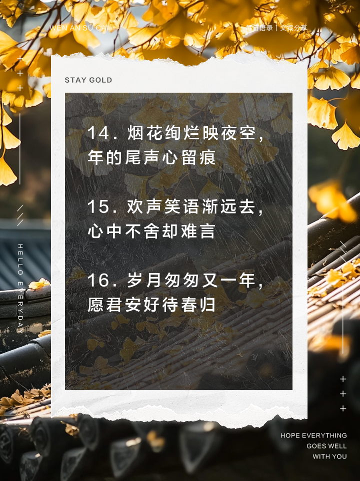 14让我失去一些最重要的,同时也换得了更好更好的自己,再见2024,再见最重要的2024精彩再现 整理发布 15今天是2024的最后一天,每一件简单的事做好,就是不简单,把每一件平凡的事做好,就是不平凡16春节的钟声将要敲响,这是属于你的一刻,愿这份美好伴着2024的。
