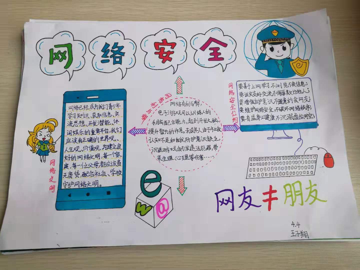 网络安全手抄报如下1没有经过父母同意,不要把自己及父母家人的真实信息,如姓名住址学校电话号码和相片等,在网上告诉其他人2如果看到不文明的信息或图片,应立即告知父母3不要在聊天室或BBS上散布对别人有攻击性的言论,也不要传播或转贴他人的违反中小学生行为规范甚至触犯法律的内。