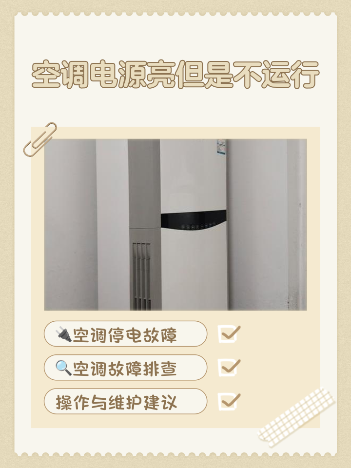 5、空调指示灯不亮且无法启动,需要从电源到设备逐步排查原因常见情况包括供电异常或内部零件故障操作时优先确保安全,若涉及拆机检查或电路操作,联系专业人员更稳妥1#160电源问题排查 先查看插座是否有电,比如插其他电器测试若插头松动或插座接触不良,重新插拔并固定即可若使用排插,可换到。
