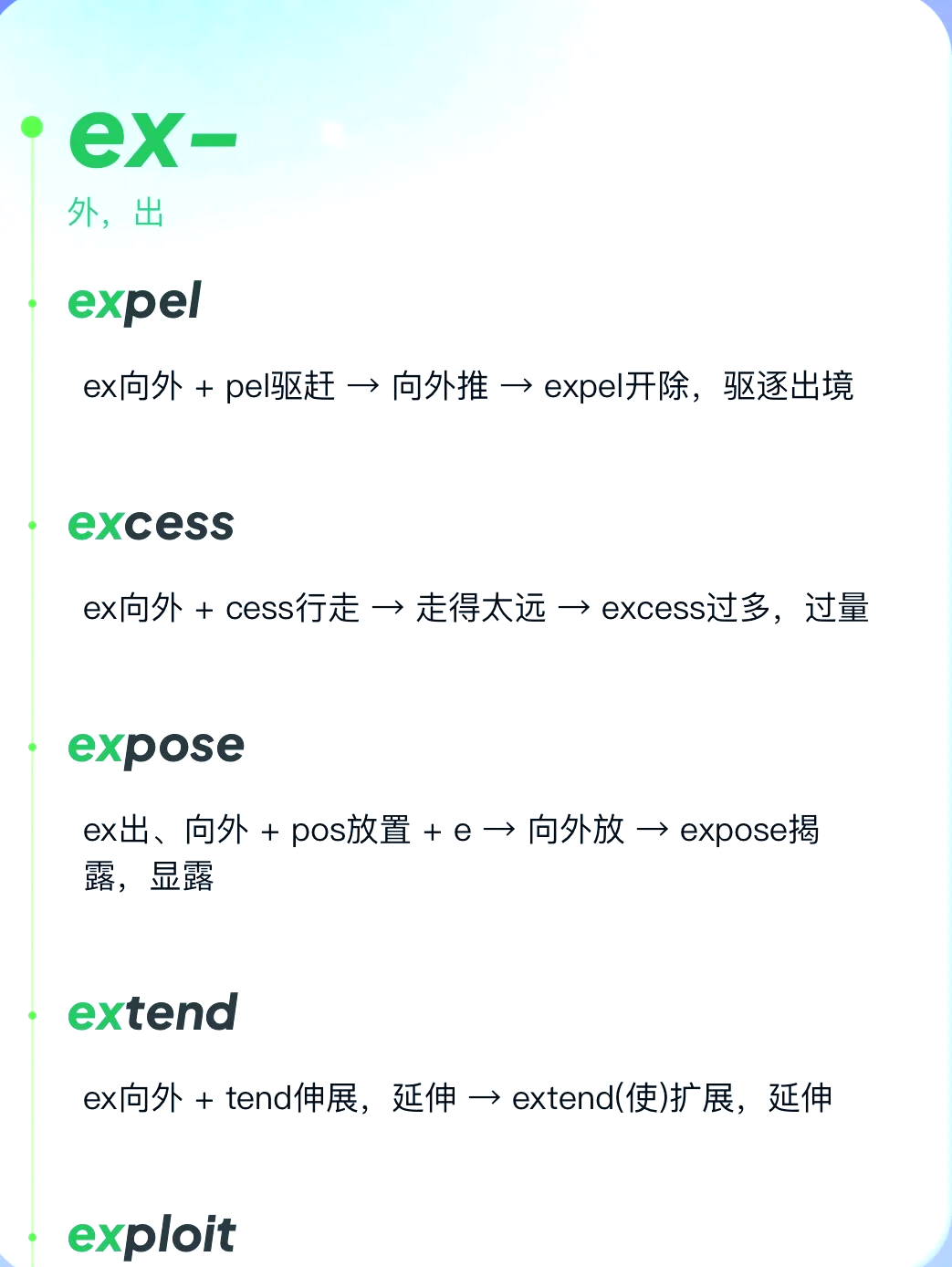 6、用于描述创建或设立某种事物,如公司规则或理论等expand意为扩展,膨胀既可以表示物理上的扩展,如物体的增大,也可以表示抽象事物的扩展,如知识的增长等以上仅为部分以字母e开头的英文单词,实际上英语中有许多以e开头的单词,涵盖了各种不同的含义和用法如需更多单词,建议查阅英文词典。