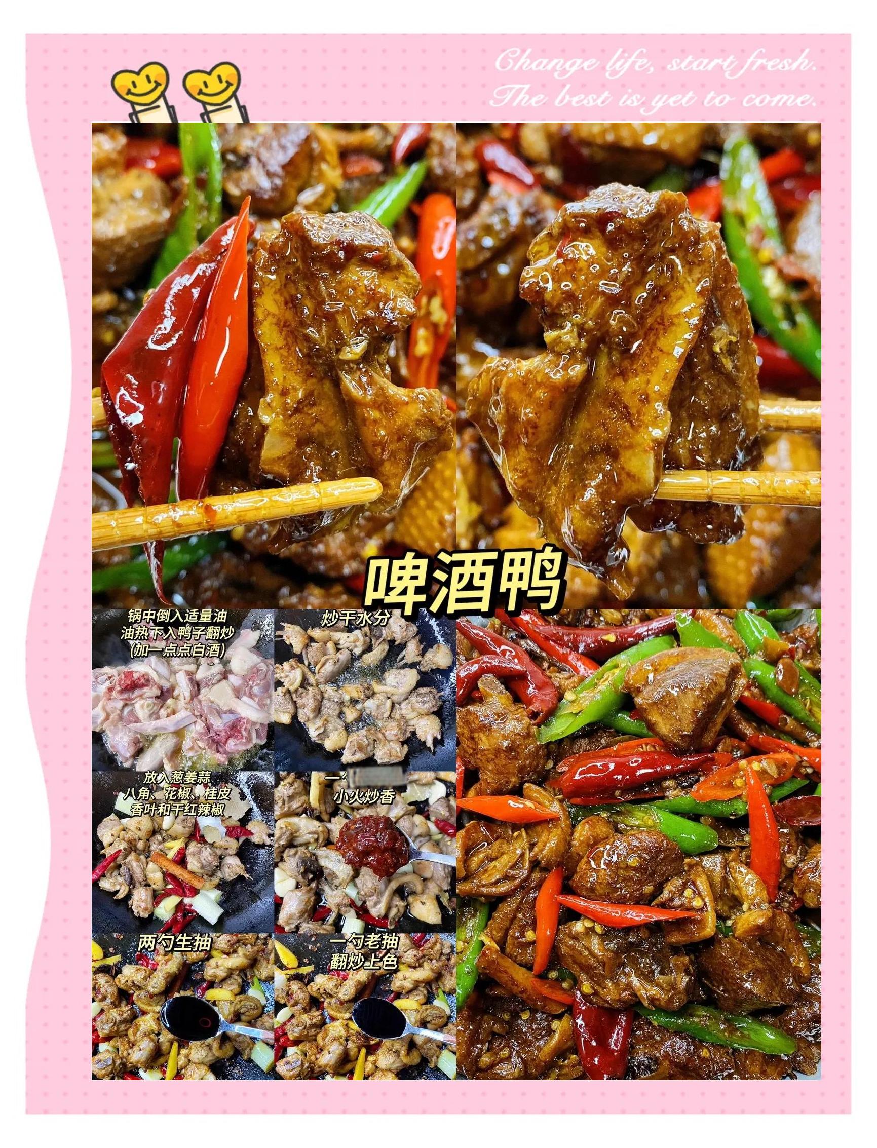 2用沸水把鸭肉抄一遍,倒入滤筲箕里滤干水份3把油烧热,把葱段蒜整个的小蒜头姜辣椒肉桂花椒八角爆香,把鸭子放入锅中炒一会,用油把鸭肉爆一会这样鸭肉会香一些的,但要用铲炒一炒的,放入适当的盐4闻到鸭肉的香,就可以倒入啤酒啤酒要盖过鸭肉才可以5不要用;啤酒鸭火锅的做法和配方如下准备食材主角鸭子一只,要选肉质鲜嫩的哦调料干辣椒豆瓣酱火锅底料各适量,这些可是提味的关键辅料姜片适量,去腥增香就靠它啦灵魂啤酒一罐,让火锅汤底醇香四溢其他还有适量的食用油和清水,别忘了准备些火锅食材哦处理鸭子把鸭子洗干净。