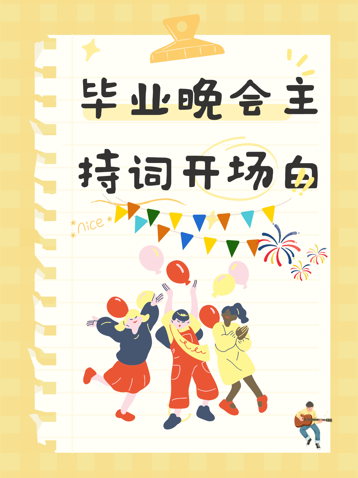 熟悉的旋律激荡着时代的热情,让我们的心灵重新感受到那份不变的真诚转眼间,我们即将踏上新的征程在这一瞬间,回望过去,我们有太多值得留恋的时刻让我们用梦想编织美丽的乐章,为我们的初中生活画上完美的句点毕业联欢会 现在,让我们一起开启这段难忘的旅程,共同创造更多的美好回忆吧;#主持词# 导语主持词已经成为各种演出活动和集会中不可或缺的重要组成部分可以说,主持词是我国艺术门类中很特殊的艺术形式,它往往依附于各种演出和聚会而出现,很少像诗歌散文那样成为独立的艺术主体以下是 考 网为您整理的毕业典礼主持词开场白范例10篇,欢迎您的阅读 1毕业典礼主持词开场白范例;高中毕业晚会主持人开场白的撰写可以参考以下内容开场部分 男时光荏苒,岁月如梭,三年的高中生活转瞬即逝 女在这充满青春与梦想的校园里,我们共同走过了无数个日夜,见证了彼此的成长与蜕变回忆与感慨 男回首往昔,那些奋斗的日子那些欢笑与泪水交织的时光,都化作了我们心中最宝贵的;毕业主持人台词开场白尊敬的校领导各位老师,亲爱的同学们家长们大家好今天我们齐聚一堂,在这个意义非凡的时刻,共同庆祝又一届毕业生的辉煌时刻这里是喜悦与梦想的交汇点我们回顾过去,感叹每一位毕业生的成长与蜕变我们展望未来,期待他们在新的旅程中创造更多的奇迹让我们以最热烈的。