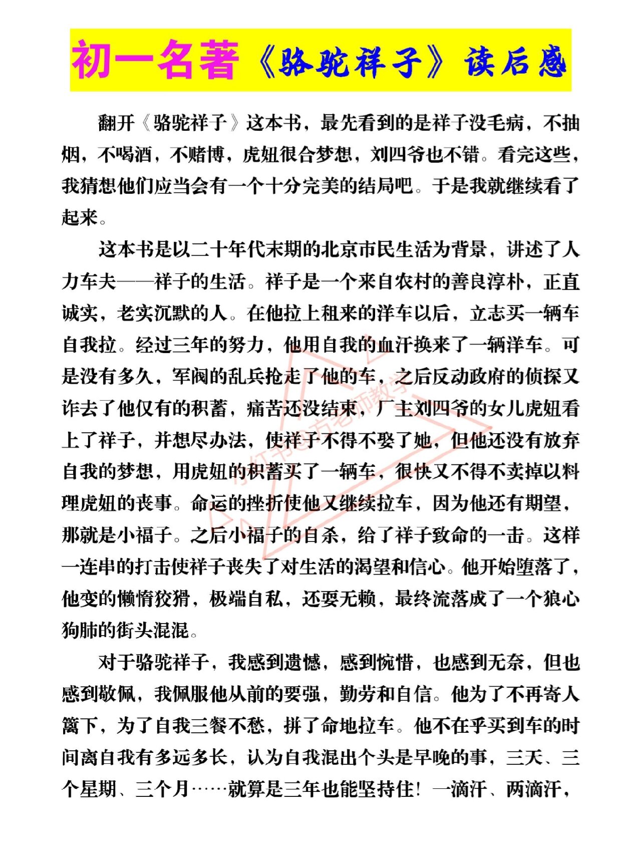 转载请注明来自极限财经,本文标题:《《骆驼祥子》读后感800字作文》