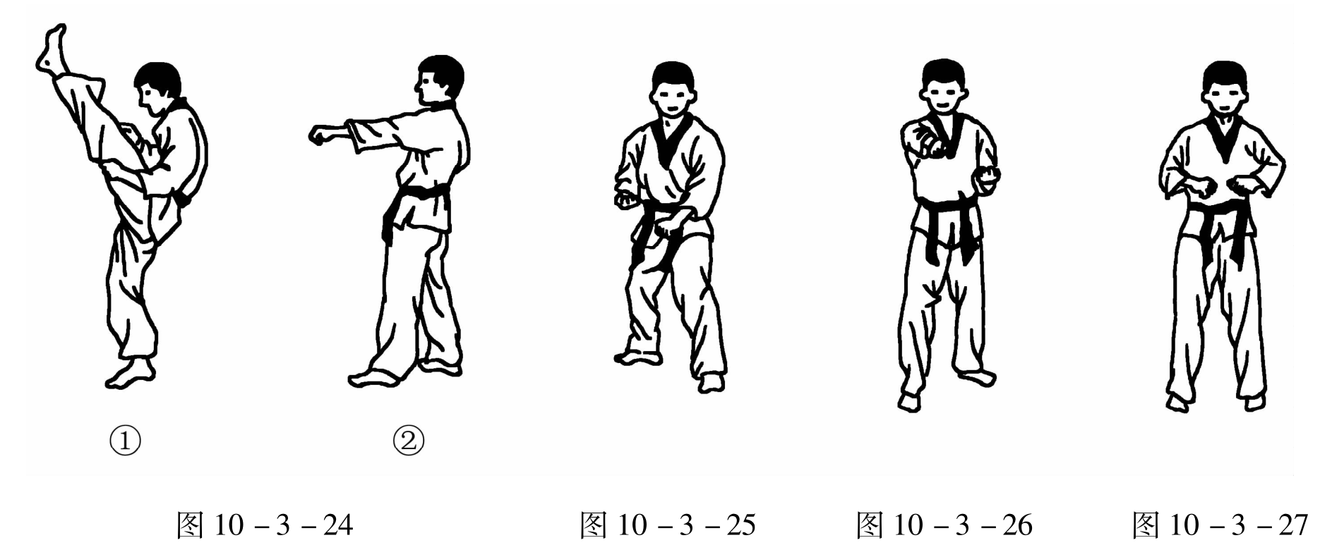 下格挡能有效防御对方的弹踢和低鞭腿,而中位格挡则是针对胸部的拳击上格挡则用于抵御下劈以及刀或棍棒的砍击外格挡,无论是低中还是高,都能防住横踢鞭腿或是拳击手刀外格挡不仅具备防身功能,还能在挡住对方攻势后迅速转变为抓住动作,使对方难以逃脱这一动作可与自己的攻击相结合,或是进行擒拿和摔法例如,在第三章中。