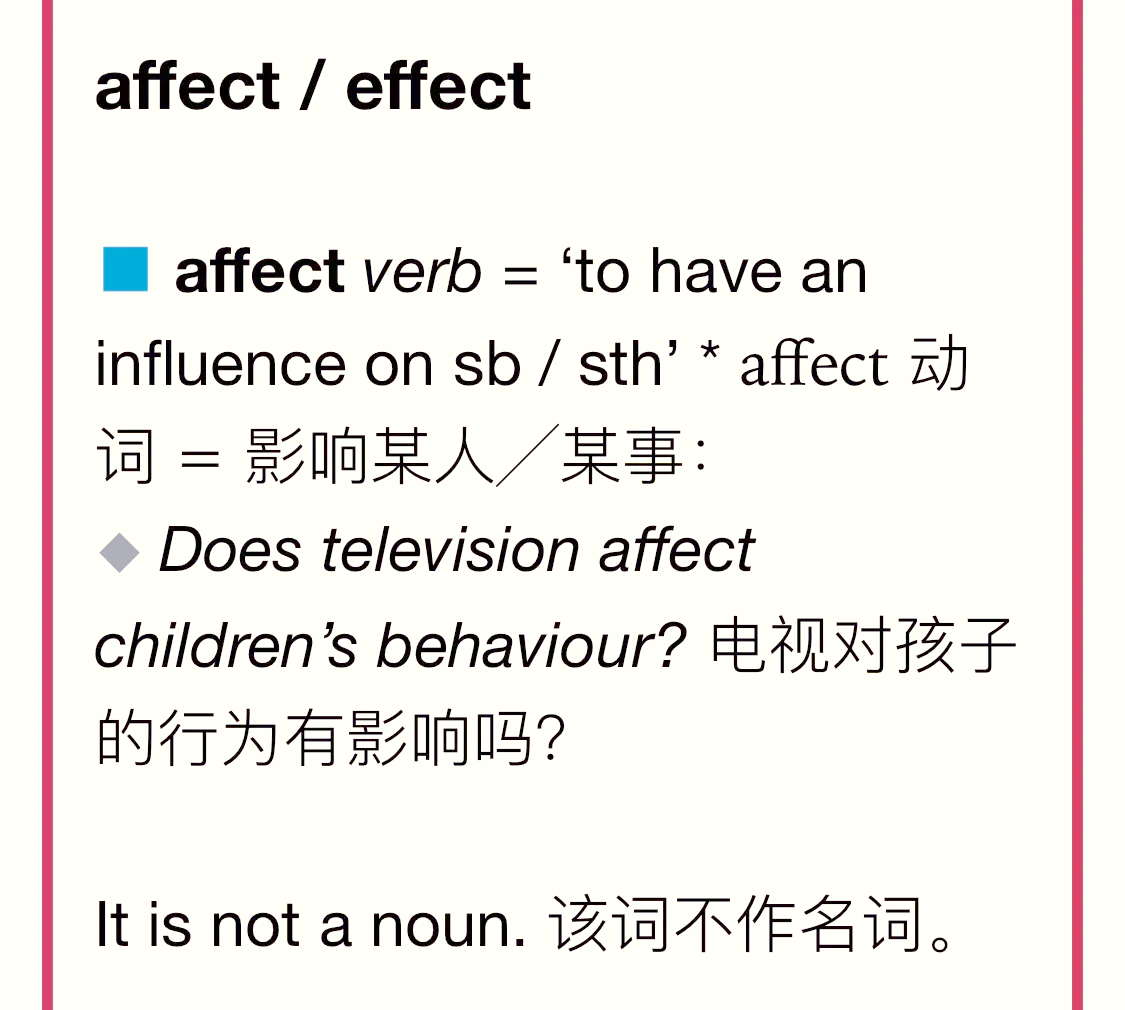 effect 是一个四级高频词汇,其核心含义及相关用法如下词义 名词影响效果动词使发生实现此含义与“影响”无关,且在四级中较少考查易混淆词辨析 affect动词,意为“影响侵袭使感染深深打动”与effect作为名词时的“影响”含义相近,但词性不同impact名词动词,意为“。