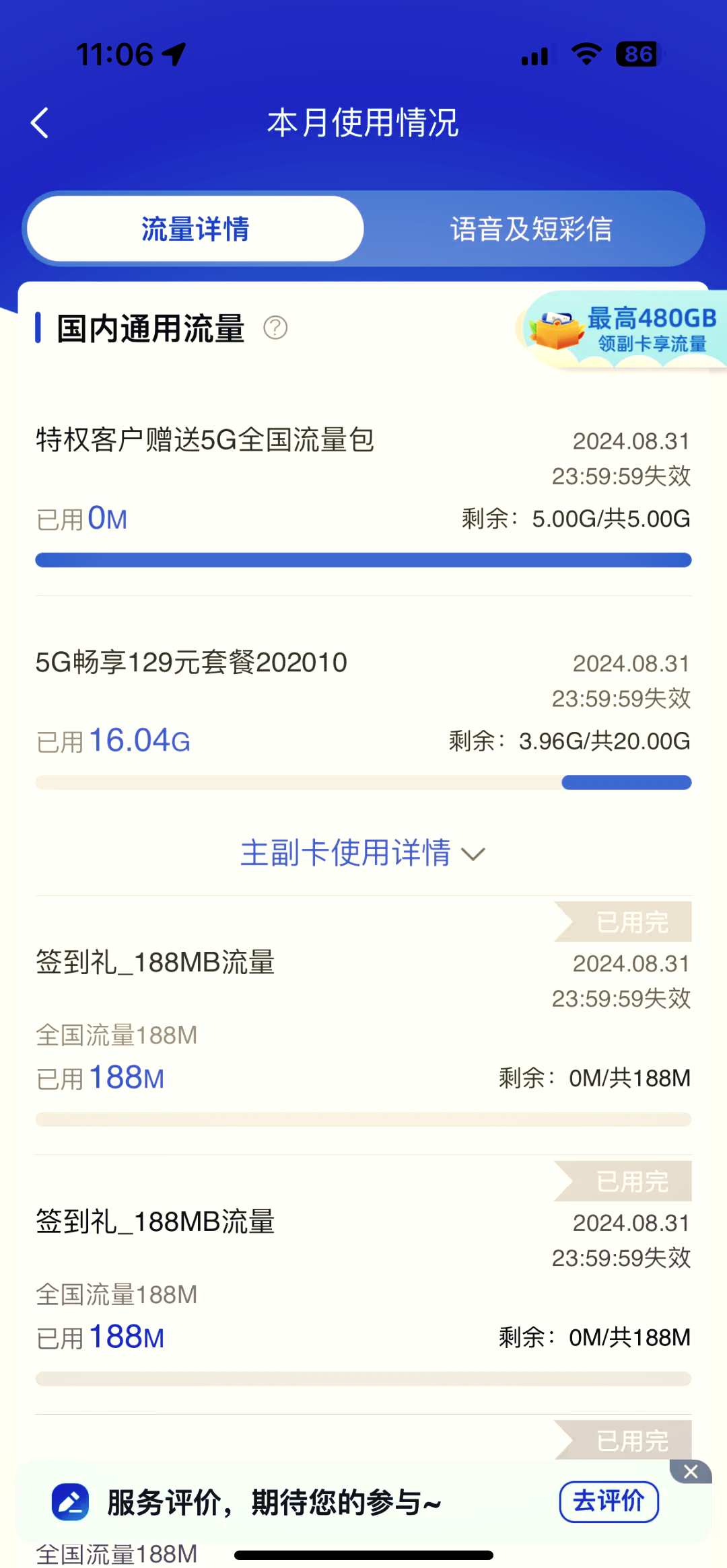 如果账户有欠费,将收到具体的欠费信息流量查询流量使用。