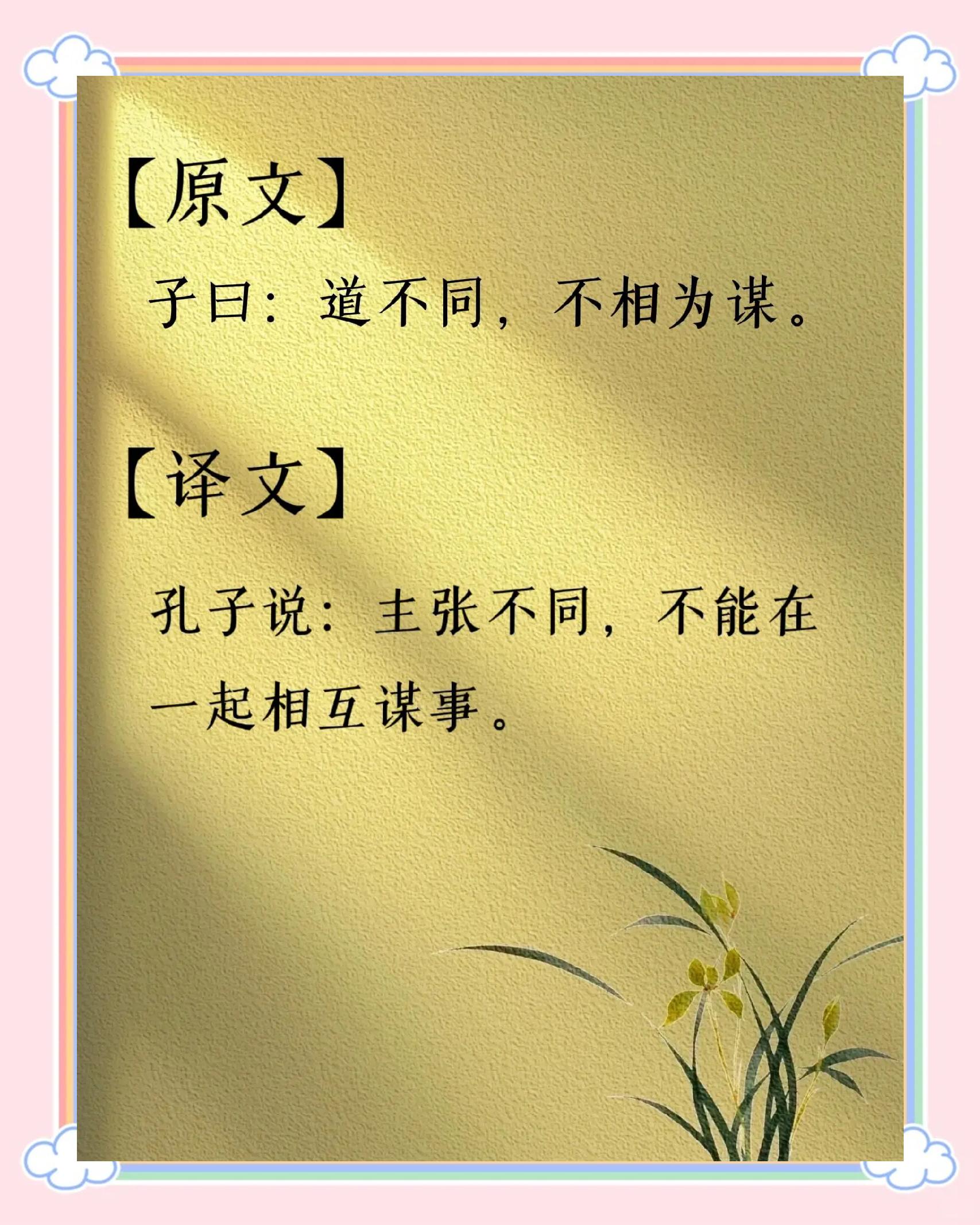 6、志不合不相为伴,道不同不相栖解释在中国古代文化中,ldquo道不同不相为谋,志不同不相为友rdquo是流传甚广的哲理名言这句话强调了人们在交往过程中,必须建立在相同或相似的价值观和理想追求上,否则无法长久相处或共事其深层含义在于人与人之间的交往,不仅仅是表面上的相处,更是。