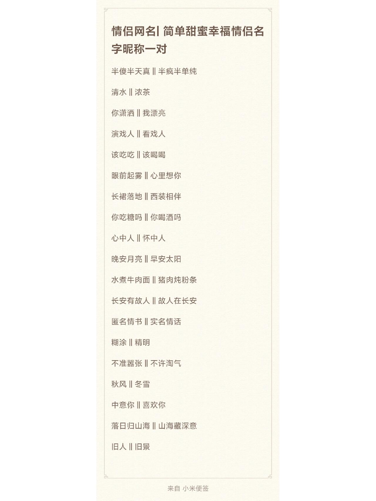 都是形容时间长久爱情坚定的词语,瞬间和诺言则强调了这一刻的珍贵和承诺的重要性8 少年他心 少年她心 这两个名字简洁明了,直接表达了情侣之间心心相印的情感这些情侣名字不仅简单干净,而且富有爱意和浪漫感,非常适合在王者荣耀等游戏中使用希望这些建议能够帮助你找到心仪的情侣名字。